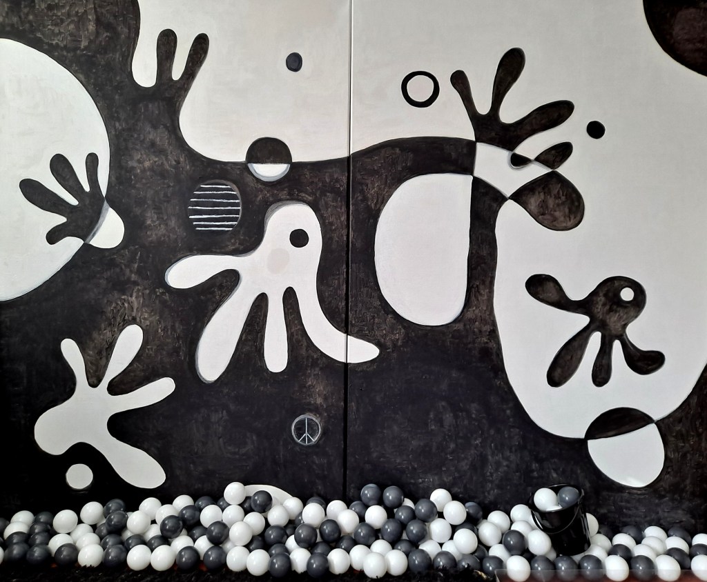 The ball pool blitz Solo Exhibition at Gallery Kalleria in October 2022 FLOATING SOULS oil on canvas 100 x 100 cm GOOD RIDDANCE! oil on canvas 80 x60 cm SUBCONSCIOUS oil on canvas 90 x 90 cm WONDERS oil on canvas 100 x 81 cm BUNNY BREAST / MIND RIDER acrylic on canvas 50×50 cm THE BALL POOL BLITZ installation: diptych acrylic on canvas 150 x 200cm, 400 ball pool balls and a bucket. Share this: Click to share on X (Opens in new window) X Click to share on Facebook (Opens in new window) Facebook Like Loading...