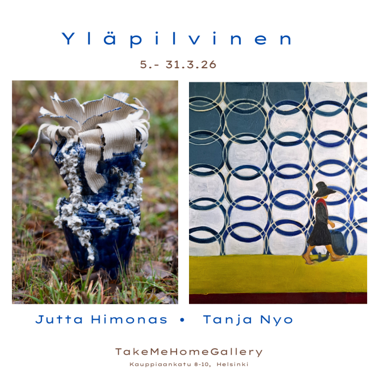Exhibition’s common denominator might be upper cloudy and that is precisely what makes it relevant and timely. The exhibition is on show in March at TakeMeHome-Gallery, a cozy little gallery in Katajanokka, Helsinki.